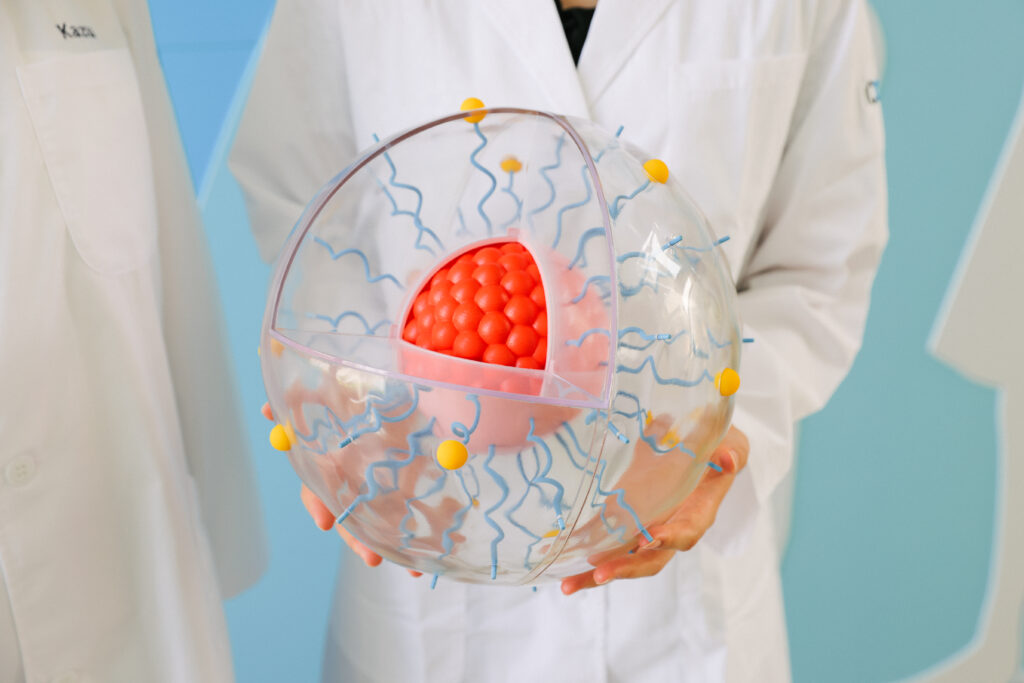 ナノ医療とは、ナノテクノロジーを医療に応用する新しい取り組みです。ナノテクノロジーとは、物質をナノメートル(1ナノメートル=10億分の1メートル)という非常に小さなスケールで扱い、その構造や性質を工夫する技術のことを指します。物質は大きさが変わると性質も変化することがあり、例えば金や銀などの金属はナノサイズになると色や硬さ、反応のしやすさなどが通常とは異なってきます。冒頭で紹介した「ナノマシン」はこうした特性を利用したナノサイズの極小カプセルです。実用化できれば、病気の細胞だけに薬を届けたり、体の中の異常を早く見つけたりと、これまでにない方法で診断や治療が可能になります。たとえば、従来のがん治療では抗がん剤をそのまま投与していたため、がん細胞ではない正常な細胞にまでダメージを与える副作用が課題でした。しかし、抗がん剤を搭載したナノマシンを使えばがん細胞だけを狙い撃ちして抗がん剤を届けることができ、副作用を抑えることができます。