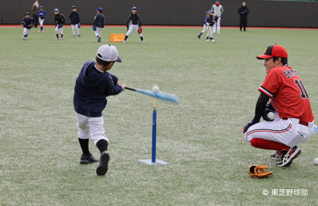 東芝野球部は本拠地を川崎市に置く、社会人野球チームです。そのホームグラウンドで行われているこちらが「ティーボール」です。