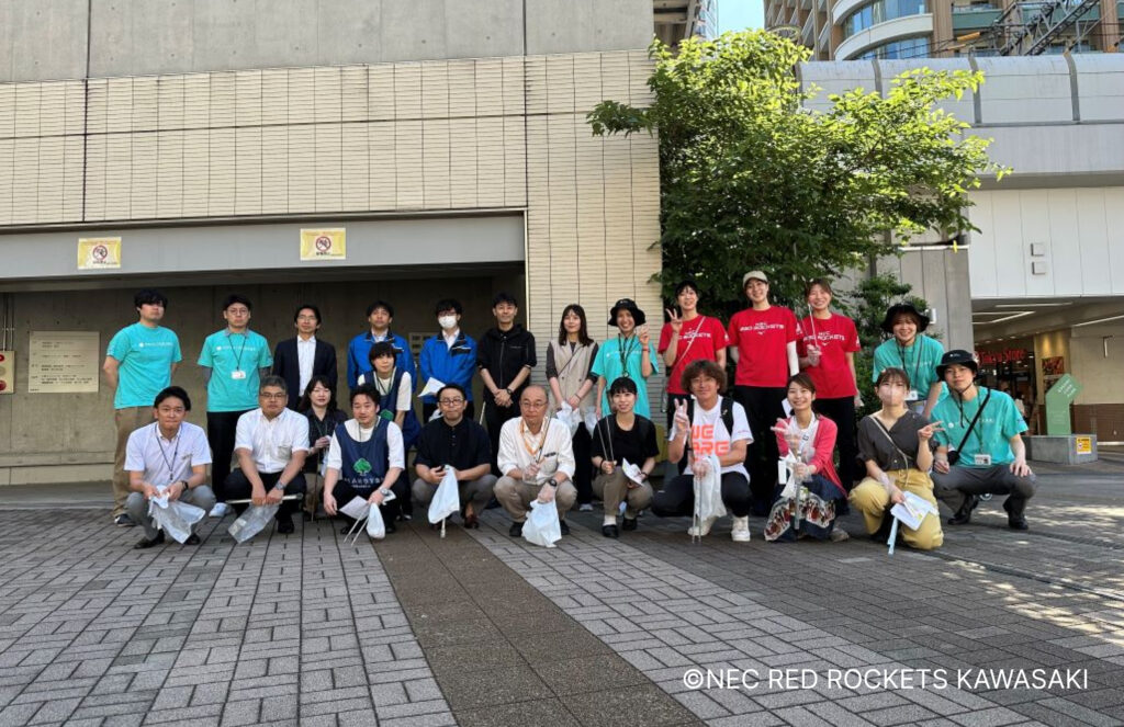 チームは地域の美化活動にも積極的に参加しています。武蔵小杉東急スクエアが主催する、武蔵小杉駅周辺のゴミ拾い活動「コスギタウンクリーニング」。選手やスタッフがこどもたちや地域の方々とコミュニケーションを取りながら、まちをきれいにしていきます。身近な地域の中で、互いに協力しながらまちづくりに参加する楽しさを感じられることは、選手たちにとっても大きな喜びです。