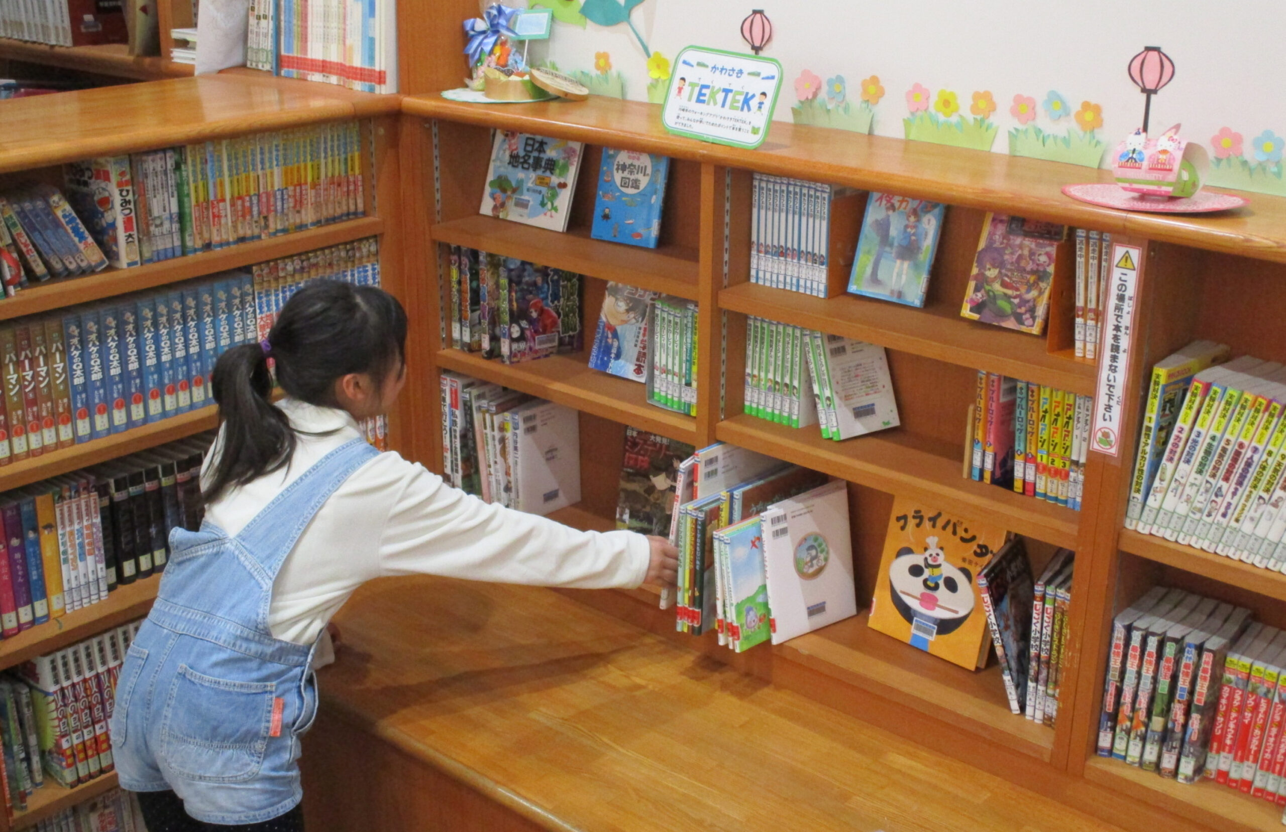 例えば川崎市立御幸小学校では、図書委員会が全校児童に購入したい本のアンケートをとったり、リクエストがあった本を選んでくれたりしたので、みんなが読みたい本がたくさん増えました。図書ボランティアさんや学校司書さんが作ってくれた「かわさきTEKTEK」コーナーは大人気で、図書室に来る人の数も増えました。