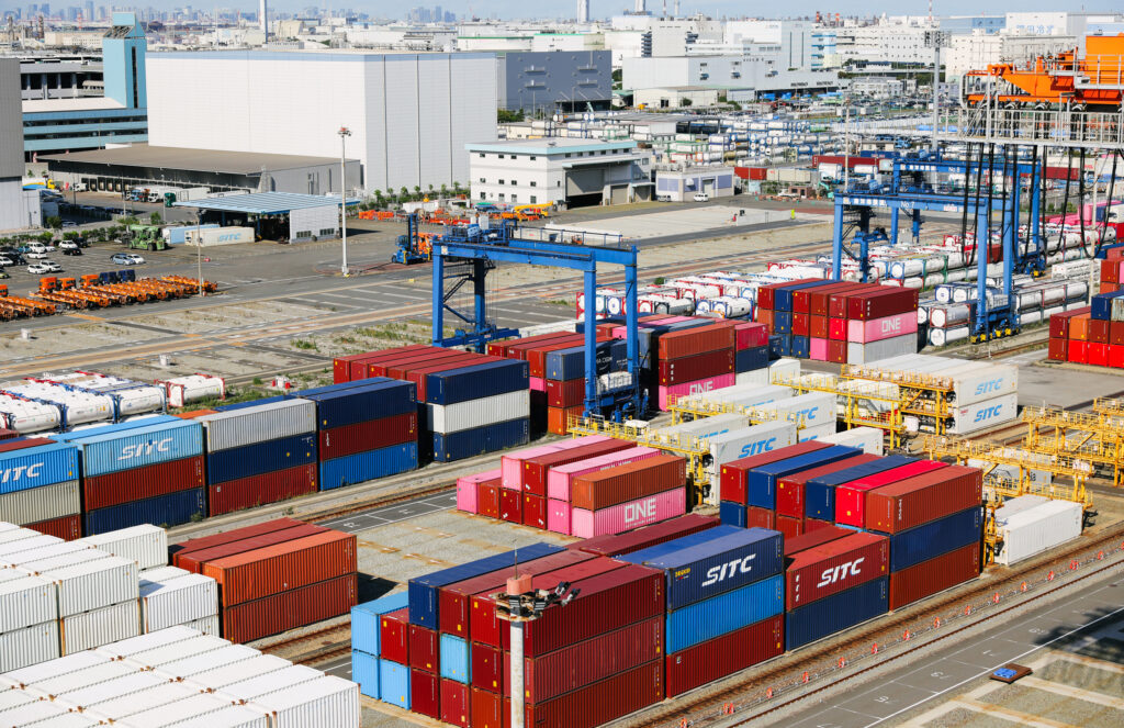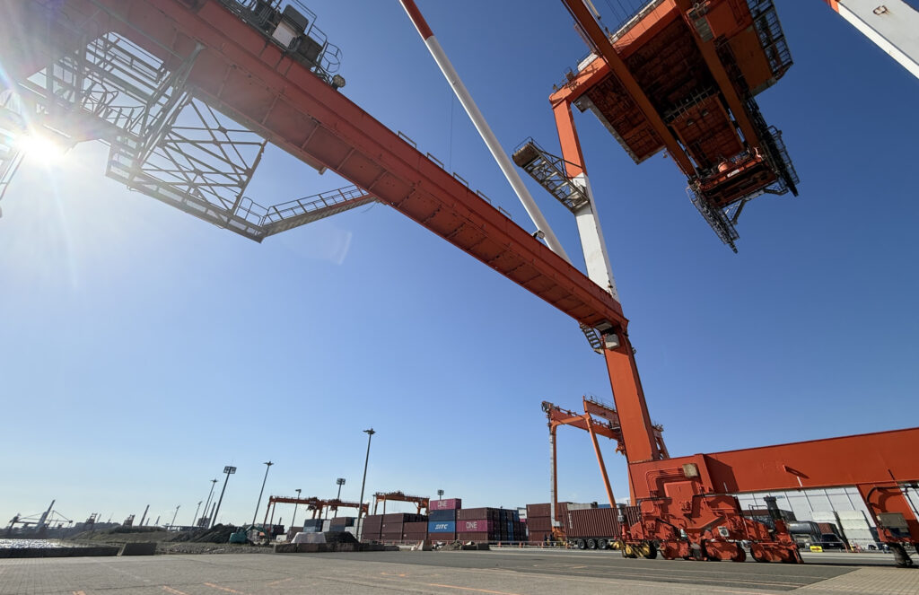 ここは、国内外から運び込まれるコンテナを、効率的に積み下ろし・保管・輸送するために整備された施設です。大型コンテナ船が接岸できる岸壁や、最新のガントリークレーン(巨大な荷役クレーン)を備え、コンテナの積み替えや一時保管、通関手続きなどがスムーズに行えるように整備されています。