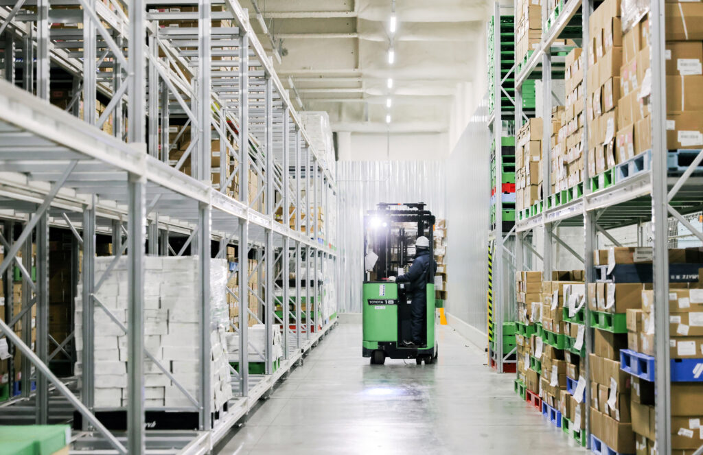建物は免震・耐震構造を備えており、災害時にも安全に稼働可能。平常時は全国への食品供給を支え、非常時には食料の安定供給拠点としても機能し、地域の食の安心にも貢献しています。さらに、省エネ性に優れた自然冷媒を使用したノンフロン冷凍機が導入され、CO2排出量の削減にも取り組んでいます。