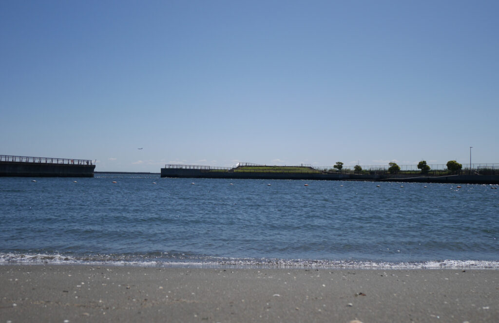 東扇島東公園にやってきました。ここは、芝生広場やウッドデッキ、人工海浜、運動場やドッグランもある広大な臨海公園。のんびり、海を行く船や、飛行機を眺めながら一日過ごすことができます。