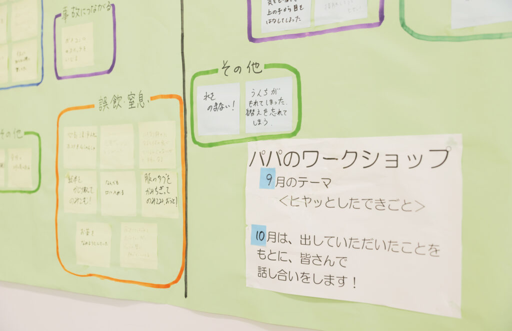 パパたちが日々の思いや悩み、家族への気持ちをふせんに書き出し、壁に貼って共有。参加したパパたちからは、「言葉にしてみることで気づくことがある」「同じ気持ちの人がいると知って安心した」といった感想が寄せられていて、子育て中の「パパの輪」も少しずつ広がっているようです。