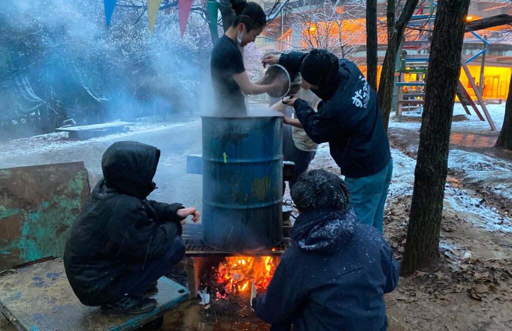 曜日によっては工具や火も使えるので、遊びの幅もぐっと広がっていきます。ここでは、「洋服が汚れるからやめなさい」、「危ないからダメ!」と頭ごなしに叱られたり、遊びを止められたりすることはありません。