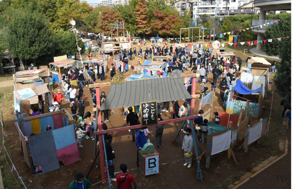 子ども夢パークでは、年間を通して様々なイベントを行っています。7月に行う「夢パまつり」では大人もこどもも水と泥でいっぱい遊びます。11月には「こどもゆめ横丁」が行われ、こどもたちが自分たちでお店を作って様々なものを販売します。このほか、地域の皆さんと一緒に行う「新春イベント」やスタジオ利用者による音楽フェス「KUJIROCK(クジロック)」など、楽しいイベントがたくさん。各イベントについては、Instagram(@kodomo.yumepark)でも情報を発信していますので、ぜひチェックして遊びに来てくださいね。