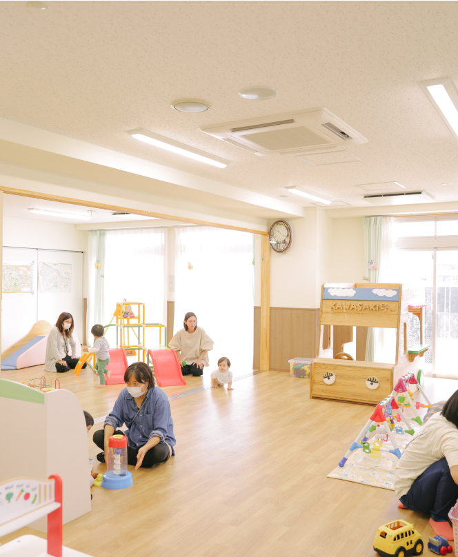 この日も、明るく広々とした「にこにこルーム」では、保育士さんが見守ってくれている中でこどもたちがのびのびと遊び、保護者同士の会話が弾んでいました。保護者の皆さんからは、「こどもを遊ばせながら、他のママたちとおしゃべりできるのがうれしい」、「先輩ママから子育て情報を教えてもらえて助かる」、「困ったときに“ここに行けば大丈夫”と思える場所があって、本当に安心」といった声が聞かれました。保護者の皆さんの安心感と楽しい気持ちは、きっとこどもたちも届いているはず。